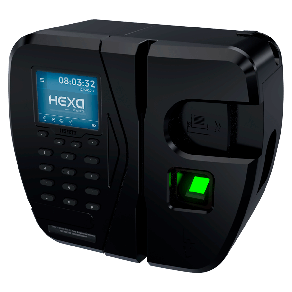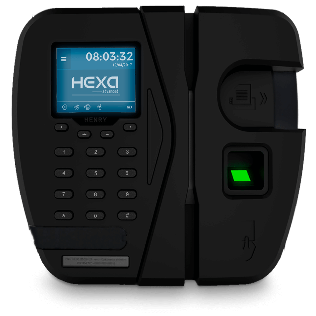 O Hexa Advanced é um relógio de ponto eletrônico (REP) homologado pelo Ministério do Trabalho e Emprego certificado pelo Inmetro. Disponível em 5 modelos com tela touch screen e diferentes combinações de leitores de identificação do usuário. Possui exclusivo sistema de impressão EasyLoad de fácil reposição da bobina, com ótimo aproveitamento e autonomia de consumo do papel. Sua nova tecnologia ADV proporciona um melhor